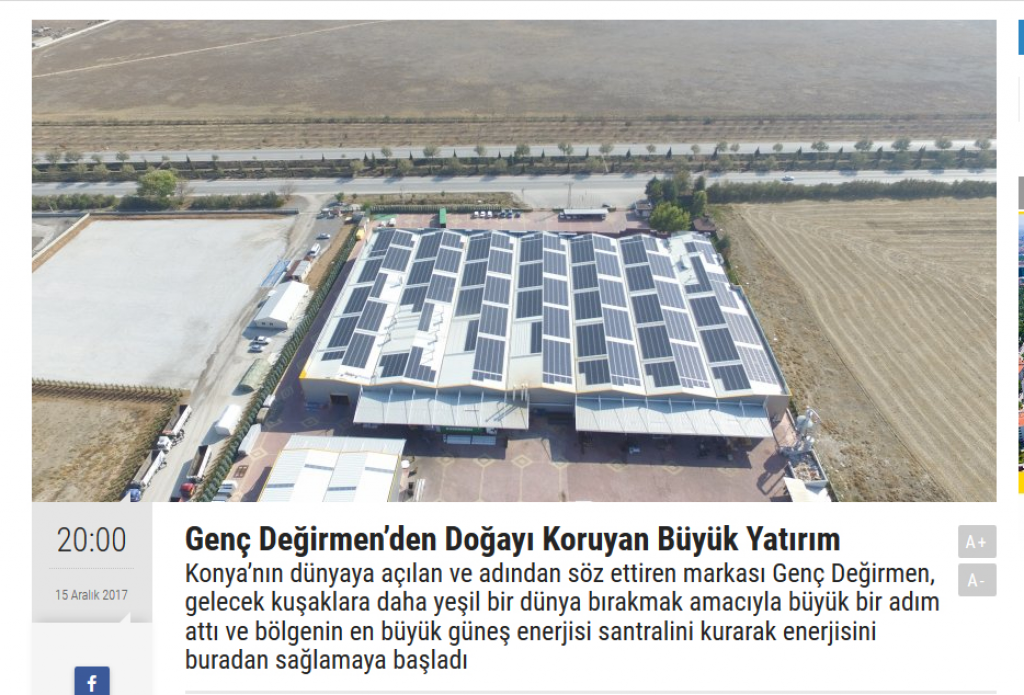 Konya’nın dünyaya açılan ve adından söz ettiren markası Genç Değirmen, gelecek kuşaklara daha yeşil bir dünya bırakmak amacıyla büyük bir adım attı ve bölgenin en büyük güneş enerjisi santralini kurarak enerjisini buradan sağlamaya başladı https://www.pusulahaber.com.tr/genc-degirmenden-dogayi-koruyan-buyuk-yatirim-747904h.htm